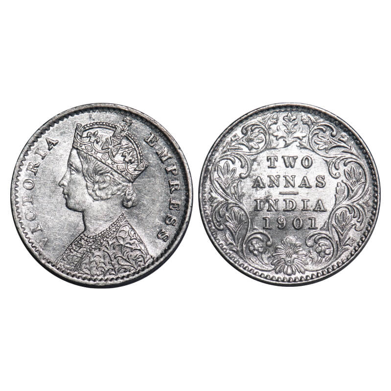 Victoria Empress, Silver, 2 Annas, 1901, Bombay Mint, B/I, 'B' incused. F. Prid 555. GK 816. About ...