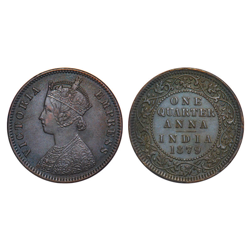 Victoria Empress, Copper, Quarter Anna, 1879, Calcutta Mint, B/II, 'C' incused. F. Prid 613. GK 831. Extremely Fine. Very Scarce.