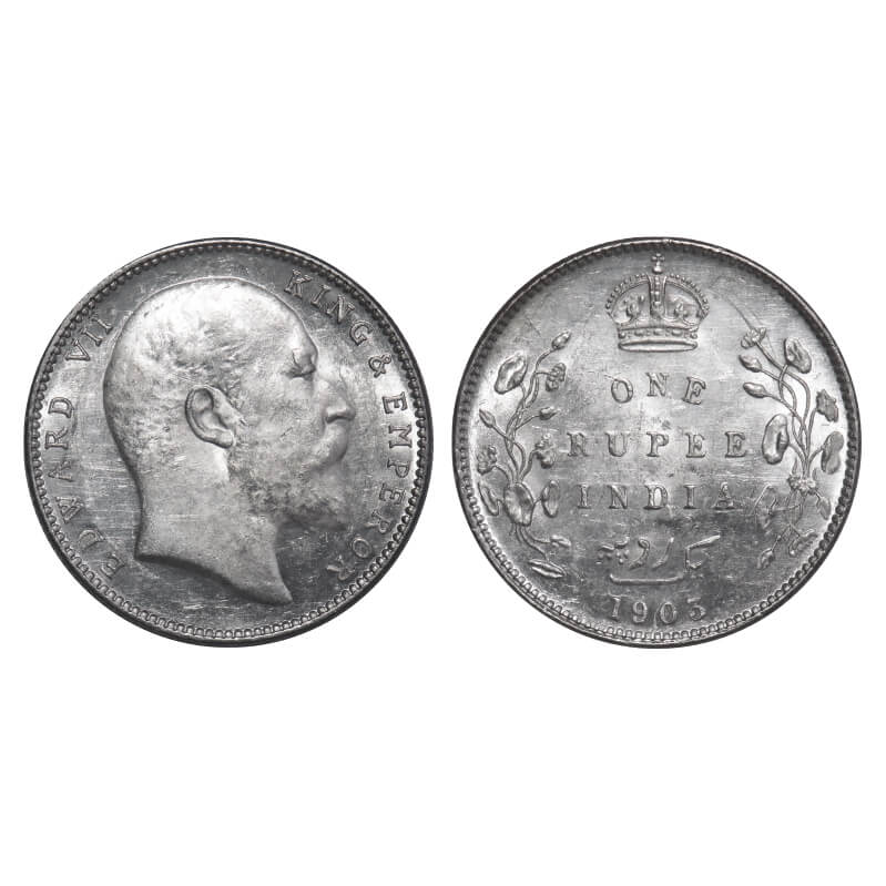 Edward VII, Silver, Rupee, 1903, Calcutta Mint, No mint mark, Normal 5 Diamonds, Ghost on Rev. F. P...