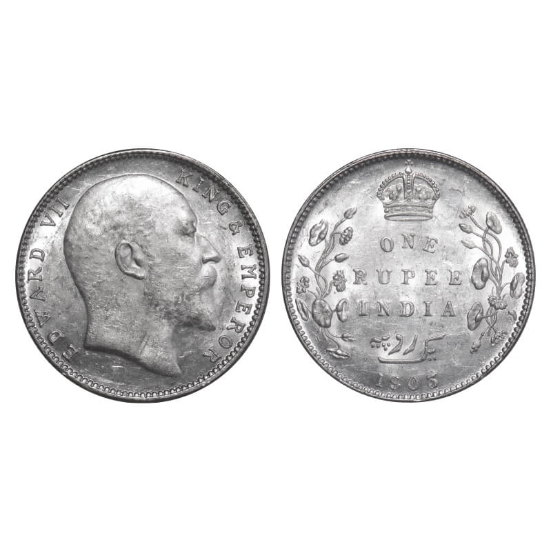 Edward VII, Silver, Rupee, 1903, Calcutta Mint, No mint mark, Normal 5 Diamonds, Ghost on Rev. F. P...