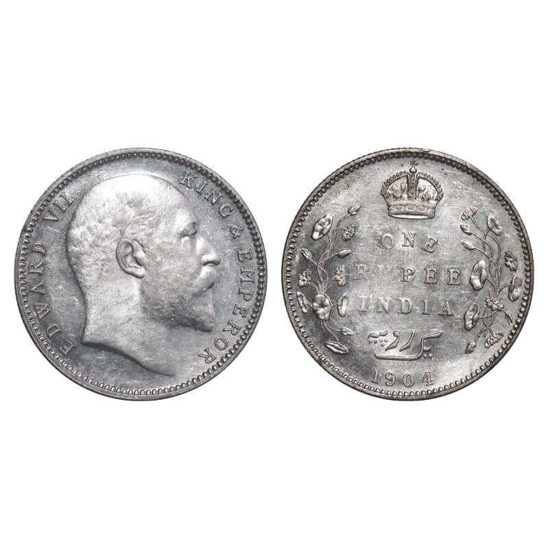 Edward VII, Silver, Rupee, 1904, Bombay Mint, 'B' incused and dot, 5 Diamonds and bottom stroke of numeral 4 short. F. Prid. GK 932. Almost Uncirculated. Very Scarce.