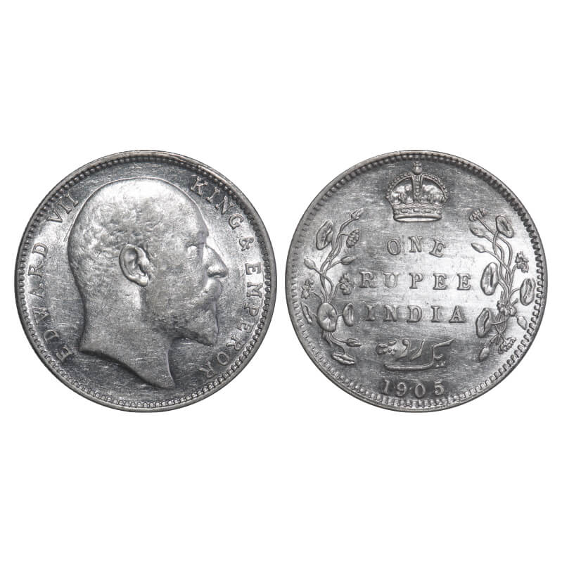 Edward VII, Silver, Rupee, 1905, Bombay Mint, 'B' incused and dot, Top stroke of numeral 5 short. F. Prid 201. GK 935. Brilliant Uncirculated with mint luster. Rare.