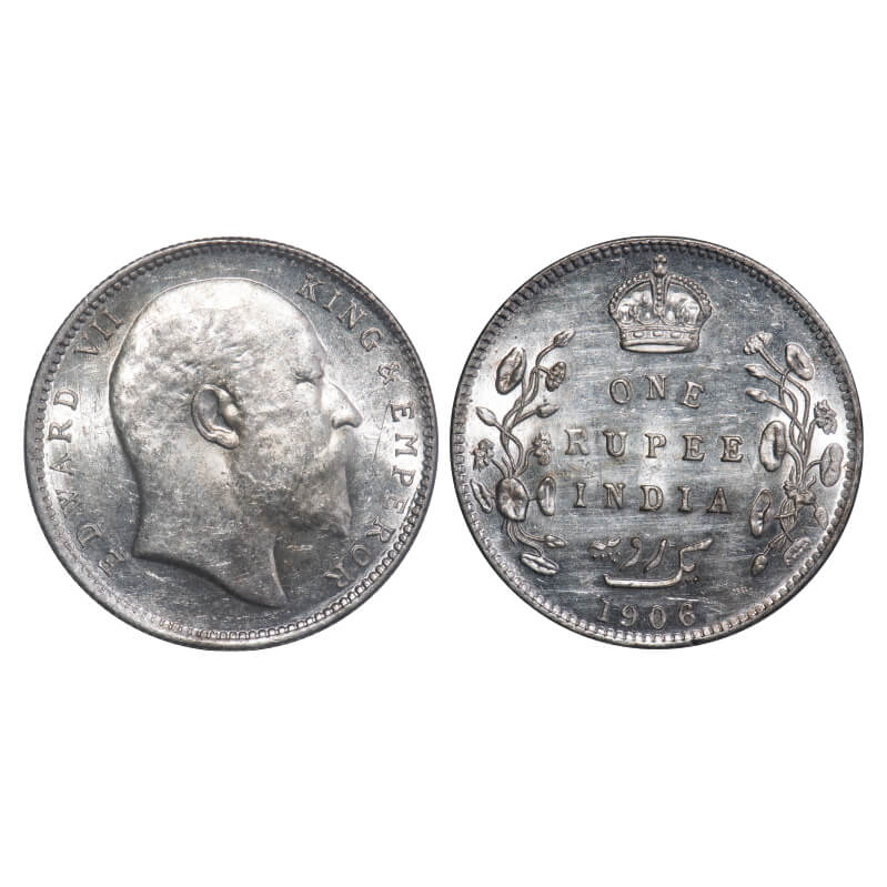 Edward VII, Silver, Rupee, 1906, Bombay Mint, 'B' incused and dot. F. Prid 202. GK 940. Brilliant Uncirculated with mint luster. Rare.