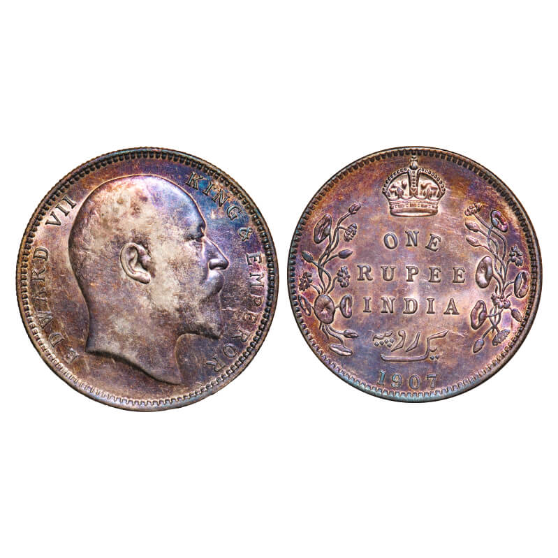 Edward VII, Silver, Rupee, 1907, Calcutta Mint, No mint mark. F. Prid 193. GK 942. Almost Uncirculated, Toned. Very Scarce.