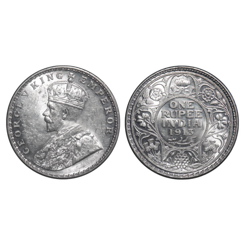 George V, Silver, Rupee, 1913, Bombay Mint, Dot. F. Prid 219. GK 1028. Mint State with luster. Very Scarce.