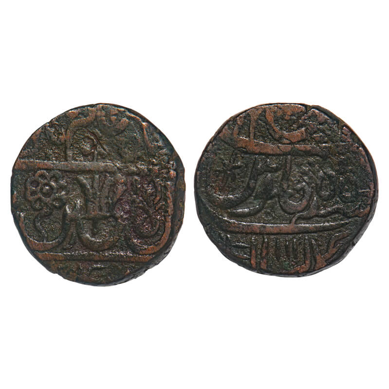 Maratha Confederacy, Copper Takka 15.46g, (Sagar), Ravish Nagar Sagar Mint, 55 RY, INO Shah Alam II, trident and flower mark M&W T5e type. About Very Fine, Scarce.
