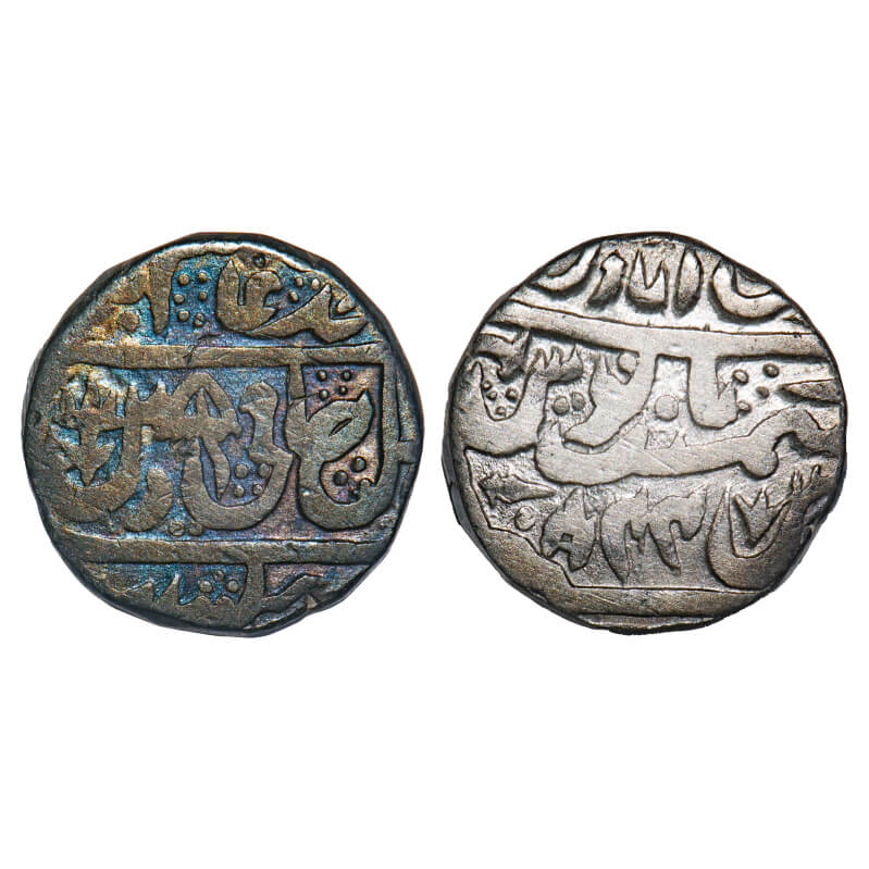 Maratha Confederacy, Silver Rupee, 10.41g, (Vrindavan), Muminabad Brindaban Mint, 44 RY, INO Shah Alam II. M&W T1/2x type different. Toned Very Fine, Scarce.