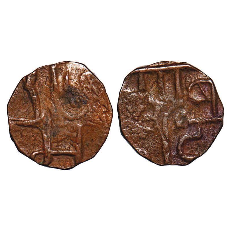 Maratha Confederacy, Copper ¼ Paisa, 1.88g, Khem Sawant III (1755-1803 AD), Wadi (Sawantwadi) Mint, both side nagari legend. Obv: Raja (Khe)m in two lines, Rev: Sawan(t) (Baha)dur in two lines. Unlisted type in M&W. About Very Fine, Very Scarce.