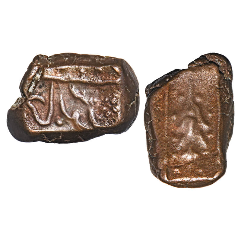 Nagpur Bhonsla Rajas, Copper Paisa, 15.21g, Unattributed type, different Long Fish mark, these types were found near Akola probably struck by nearny mint Akot or jalgaon-Jamod. P P Kulkarni 71.1 type. About Very Fine, Very Scarce.
