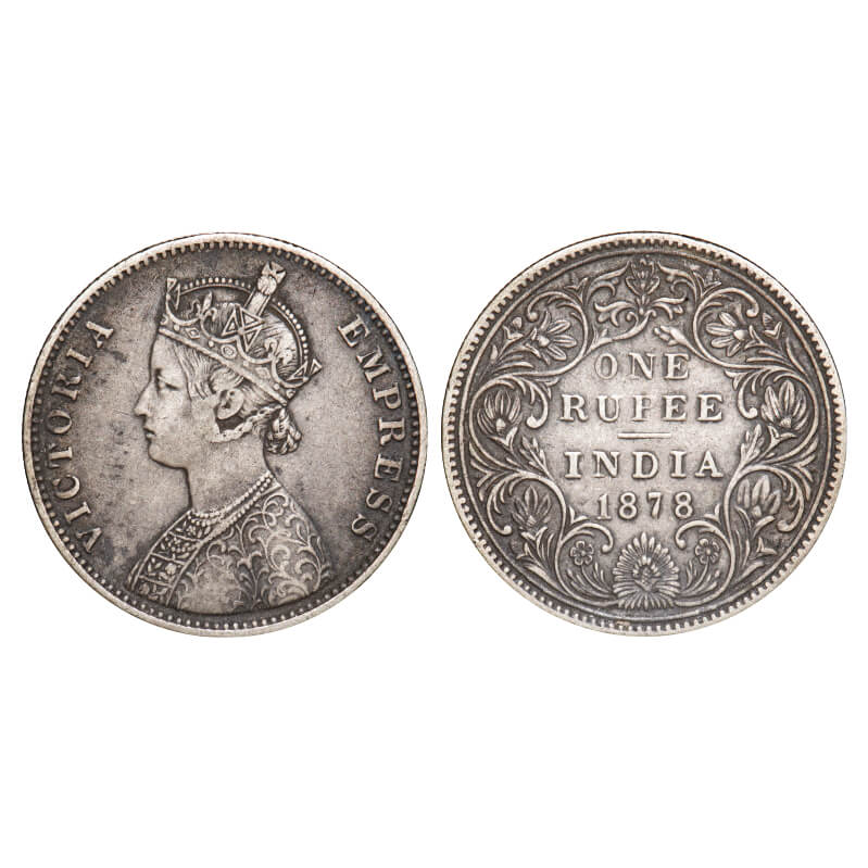 Victoria Empress, Silver, Rupee, 1878, Bombay Mint, A3/II(i), No dot. F. Prid Unlisted. GK 449. Very Fine. Very Scarce.