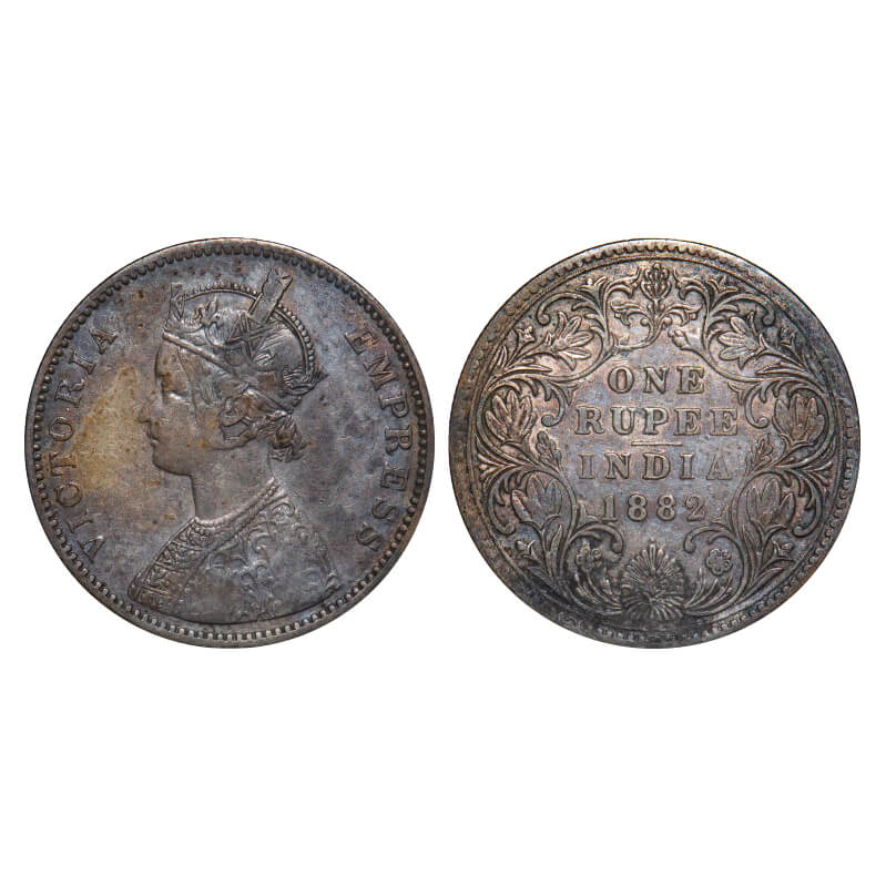 Victoria Empress, Silver, Rupee, 1882, Bombay Mint, A3/II(iv), Dot. F. Prid 159. GK 473. Very Fine+, Cleaned. Scarce.