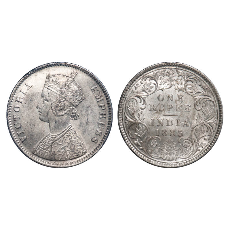 Victoria Empress, Silver, Rupee, 1883, Calcutta Mint, A1/I, 'C' incused. F. Prid 122. GK 486. About Uncirculated. Very Scarce.