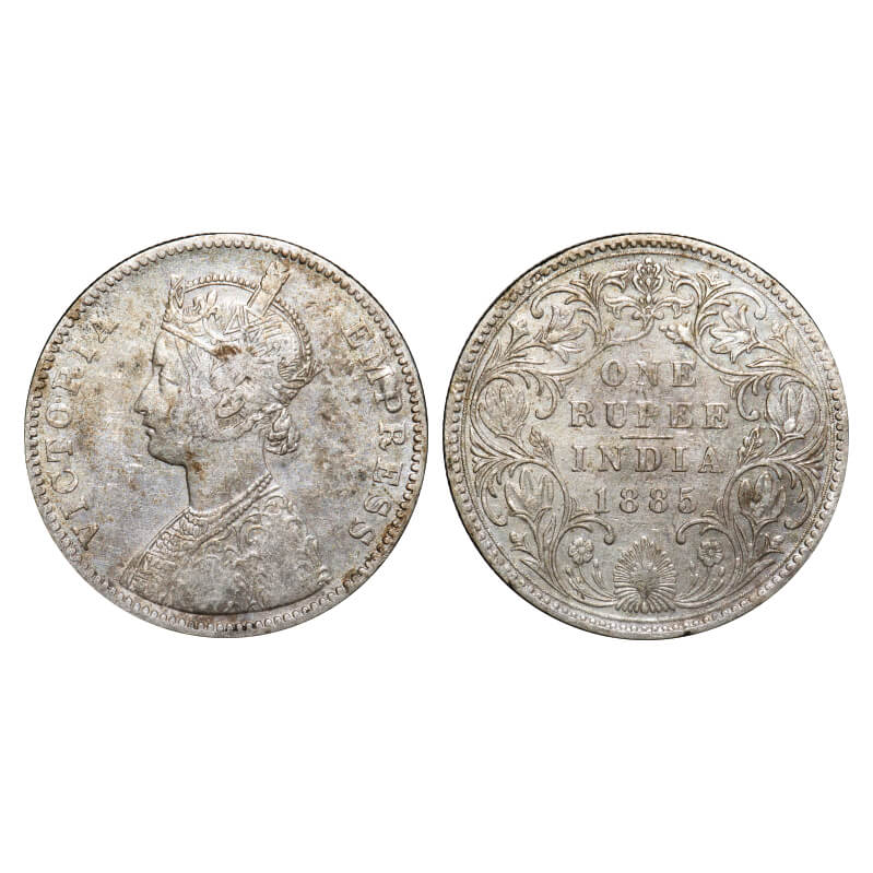 Victoria Empress, Silver, Rupee, 1885, Bombay Mint, A3/II(iv), 'B' incused. F. Prid Unlisted. GK 500. Very Fine, Cleaned. Scarce.