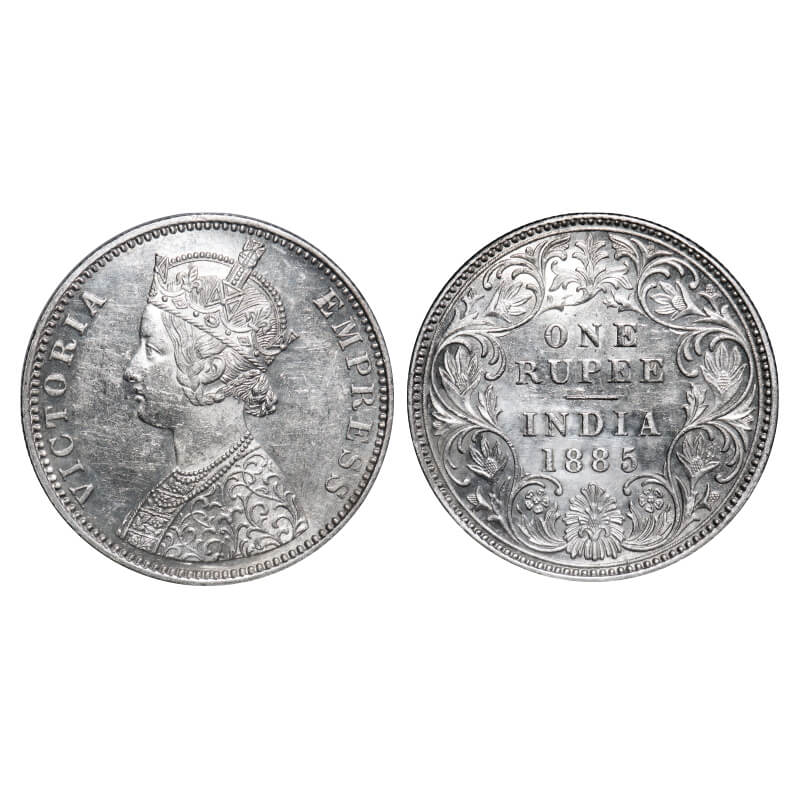Victoria Empress, Silver, Rupee, 1885, Calcutta Mint, A1/I, 'C' incused, Top stroke of numeral 5 sh...