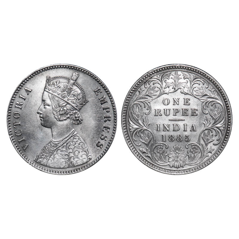 Victoria Empress, Silver, Rupee, 1885, Calcutta Mint, A1/I, 'C' incused, Top stroke of numeral 5 long. F. Prid 124. GK 519. Extremely Fine. Very Scarce.