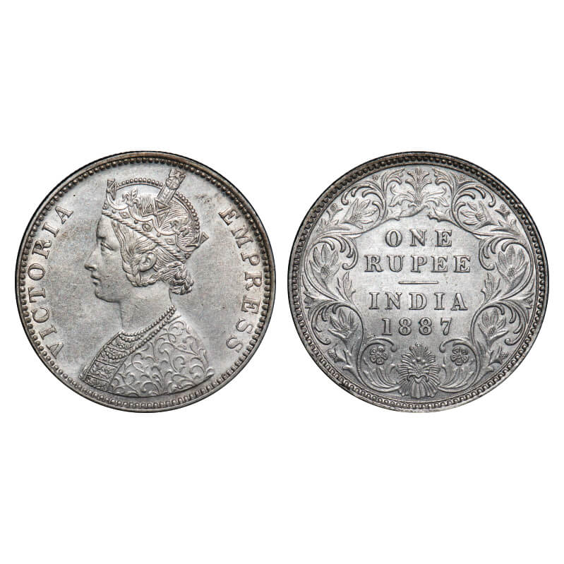Victoria Empress, Silver, Rupee, 1887, Bombay Mint, C2/I(i), 'B' incused, B incused inverted. F. Prid Unlisted. GK 543. About Uncirculated. Very Scarce.