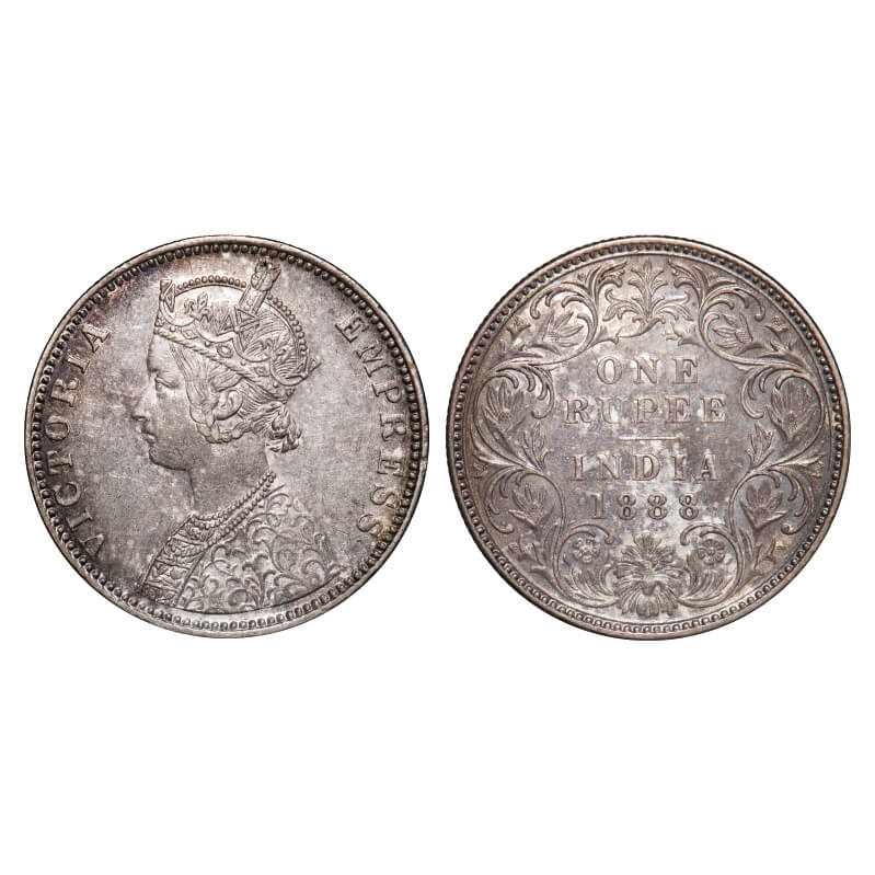 Victoria Empress, Silver, Rupee, 1888, Bombay Mint, C2/I, 'B' incused. F. Prid 175. GK 555. About Uncirculated, Toned. Scarce.