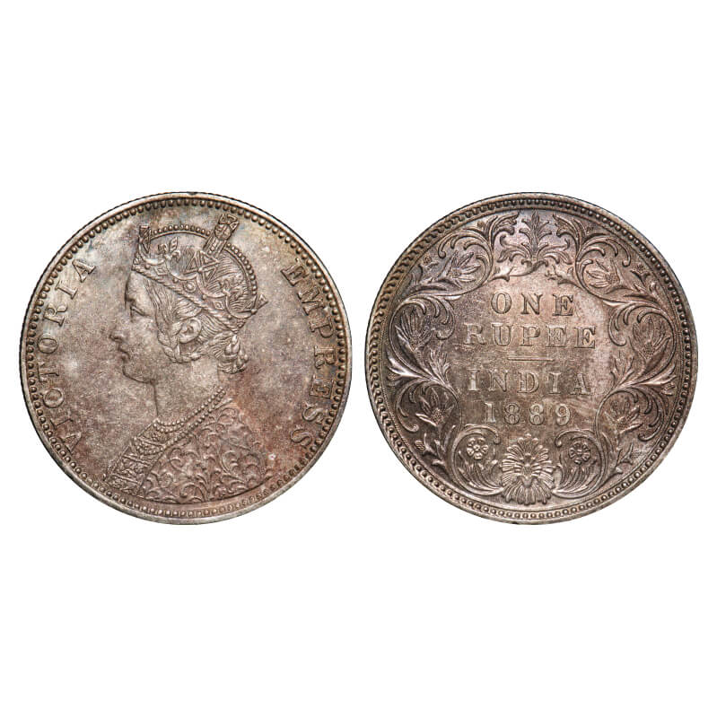 Victoria Empress, Silver, Rupee, 1889, Bombay Mint, C2/I, 'B' incused. F. Prid 177. GK 564. Uncirculated, Toned. Very Scarce.