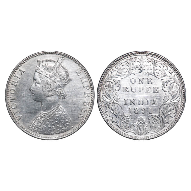 Victoria Empress, Silver, Rupee, 1891, Bombay Mint, C2/I, 'B' incused. F. Prid 179. GK 569. Extremely Fine+. Scarce.