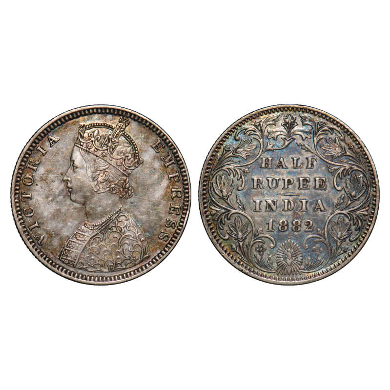 Victoria Empress, Silver, Half Rupee, 1882, Calcutta Mint, A/I, 'C' incused. F. Prid 266. GK 621. A...
