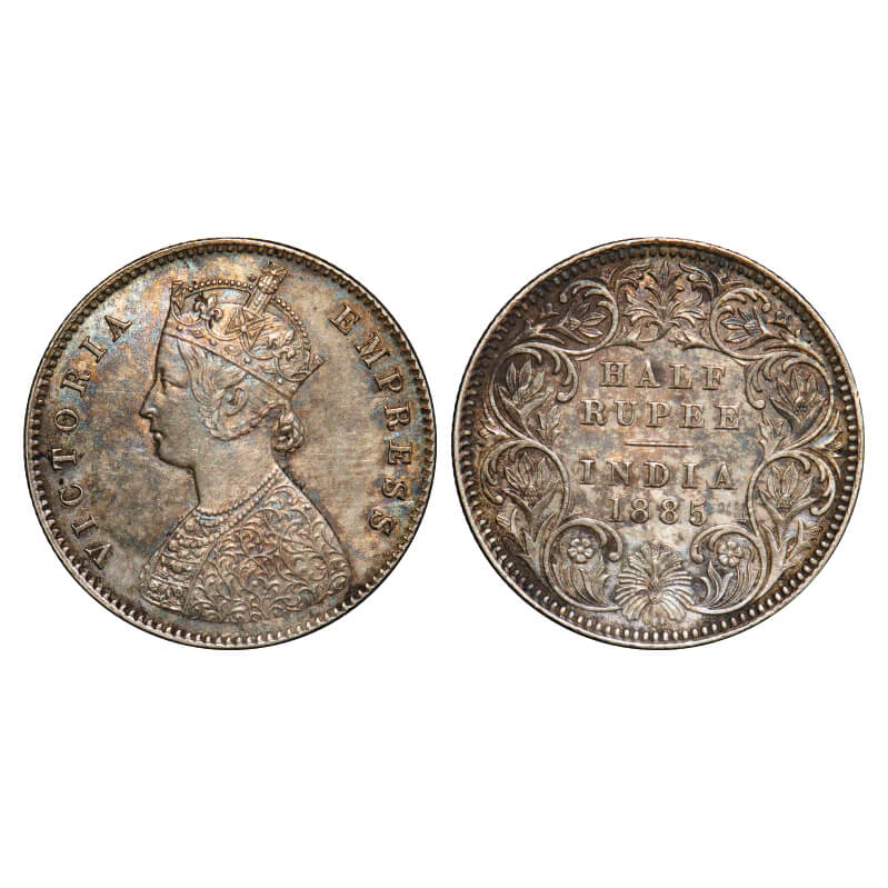 Victoria Empress, Silver, Half Rupee, 1885, Calcutta Mint, A/I, 'C' incused. F. Prid 269. GK 632. Exteremely Fine. Rare.