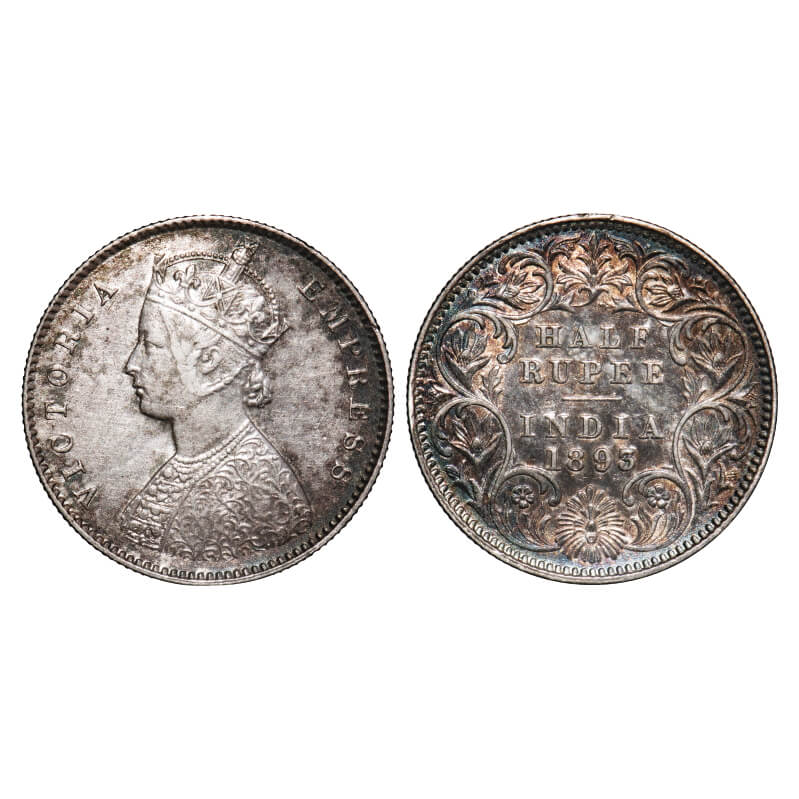 Victoria Empress, Silver, Half Rupee, 1893, Calcutta Mint, A/I, 'C' incused. F. Prid 277. GK 649. Very Fine+. Very Scarce.