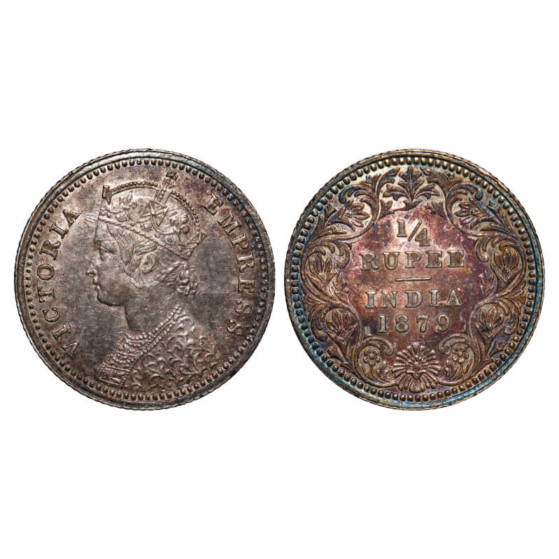 Victoria Empress, Silver, 1/4 Rupee, 1879, Calcutta Mint, C/II, 'C' incused. F. Prid 384. GK 674. About Uncirculated. Rare.