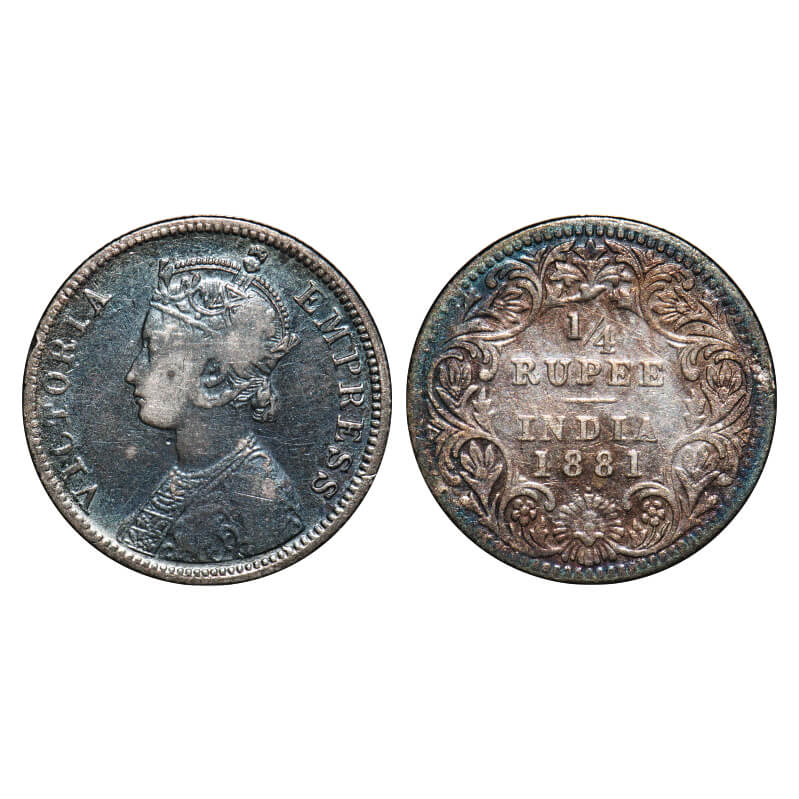 Victoria Empress, Silver, 1/4 Rupee, 1881, Bombay Mint, A/II, Dot. F. Prid 410. GK 676. Fine+. Very Scarce.