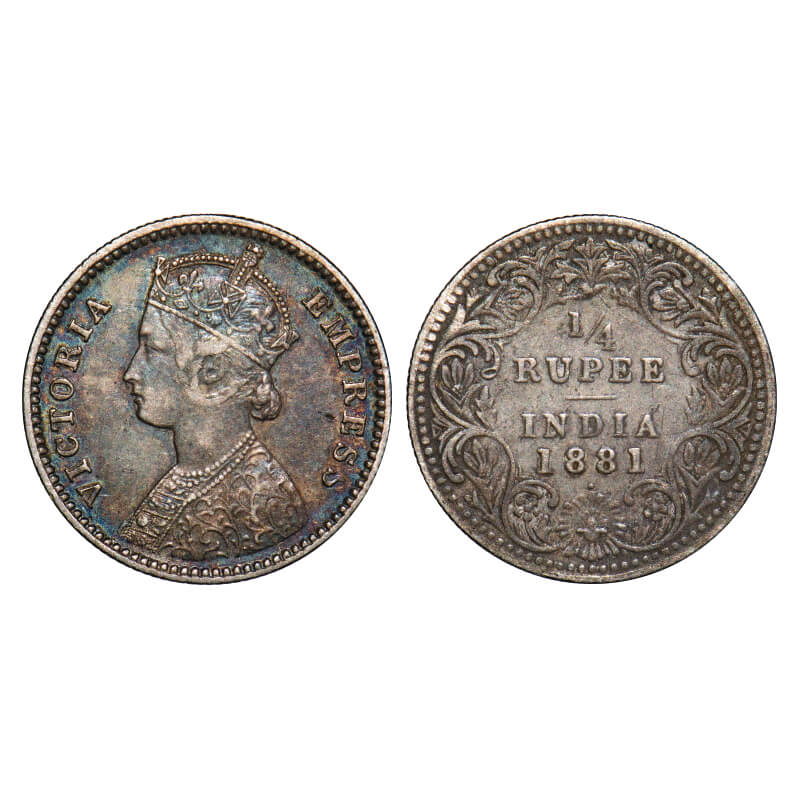 Victoria Empress, Silver, 1/4 Rupee, 1881, Bombay Mint, B/II, Dot. F. Prid 411. GK 678. Very Fine+. Very Scarce.
