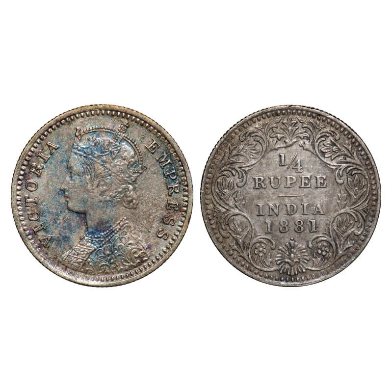 Victoria Empress, Silver, 1/4 Rupee, 1881, Bombay Mint, A/II, Dot. F. Prid 410. GK 676. Extremely ...