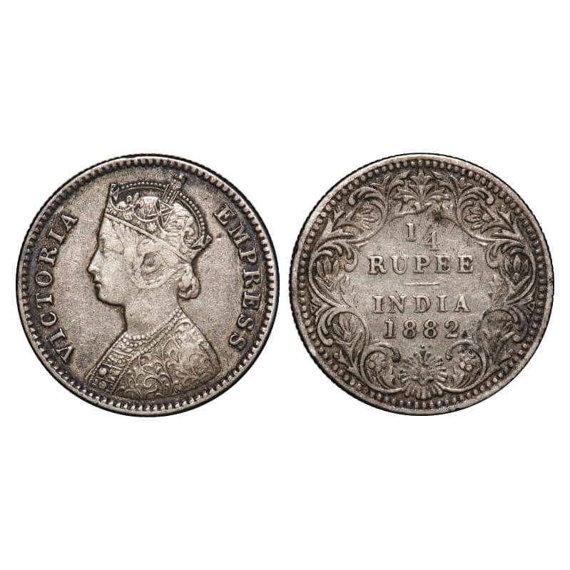 Victoria Empress, Silver, 1/4 Rupee, 1882, Bombay Mint, B/II, Dot. F. Prid Unlisted. GK 682. Very Fine. Scarce.