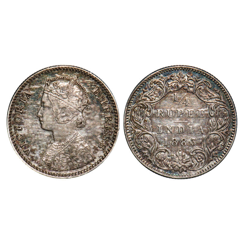 Victoria Empress, Silver, 1/4 Rupee, 1883, Bombay Mint, B/I, Dot. F. Prid 415. GK 689. Extremely Fine. Very Scarce.
