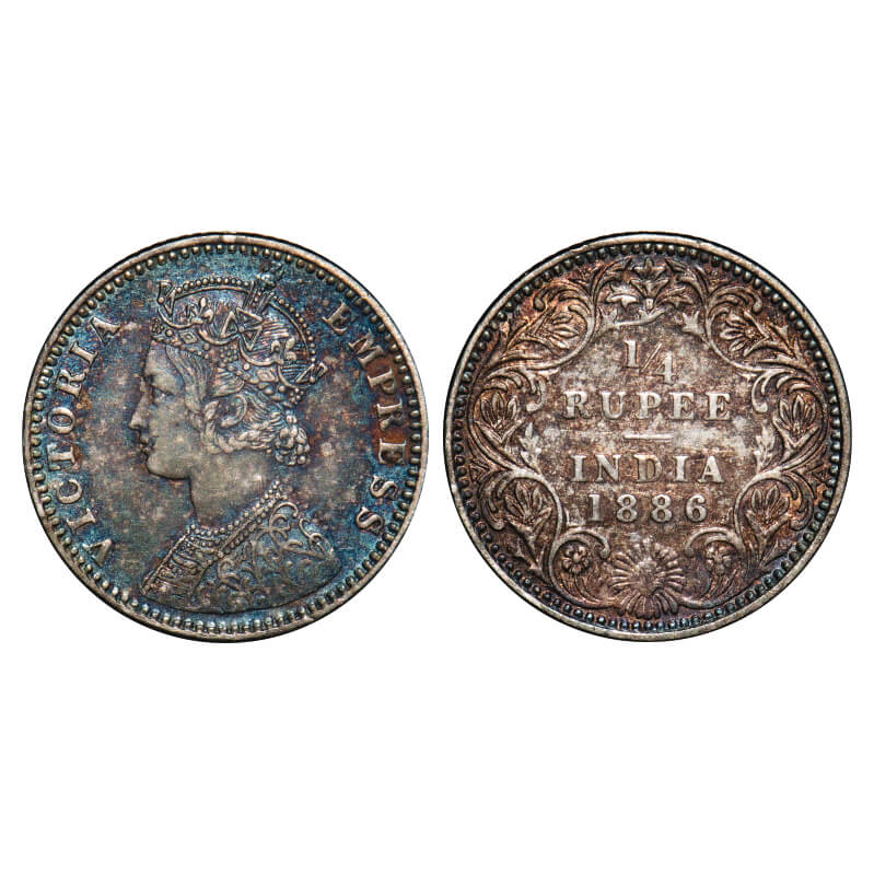 Victoria Empress, Silver, 1/4 Rupee, 1886, Calcutta Mint, C/II, 'C' incused. F. Prid 391. GK 707. V...