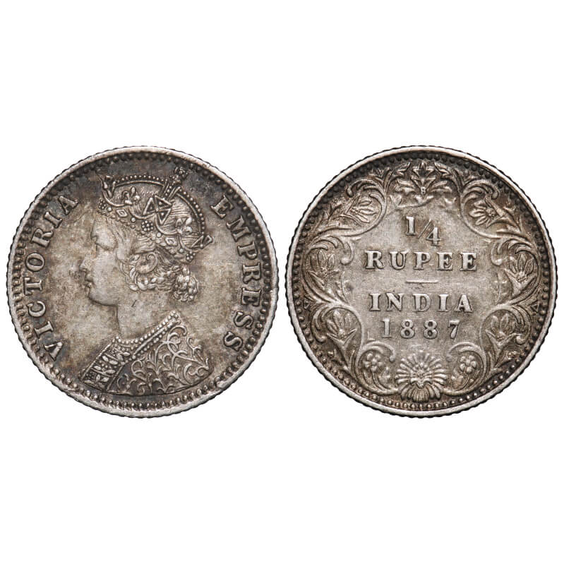Victoria Empress, Silver, 1/4 Rupee, 1887, Bombay Mint, C(i)/II, 'B' raised. F. Prid 420. GK 708. Very Fine+. Very Scarce.