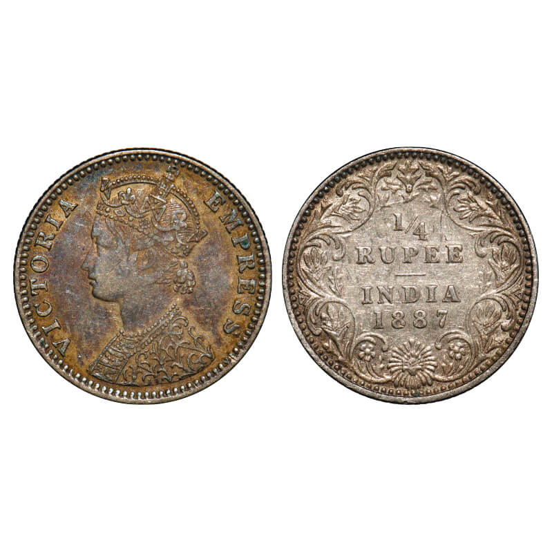 Victoria Empress, Silver, 1/4 Rupee, 1887, Bombay Mint, C(i)/II, 'B' raised. F. Prid 420. GK 708. Very Fine. Scarce.