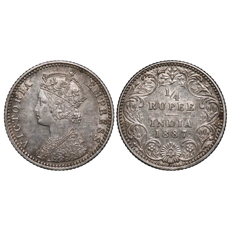 Victoria Empress, Silver, 1/4 Rupee, 1887, Bombay Mint, C(i)/II, 'B' raised. F. Prid 420. GK 708. Extremely Fine+. Very Scarce.