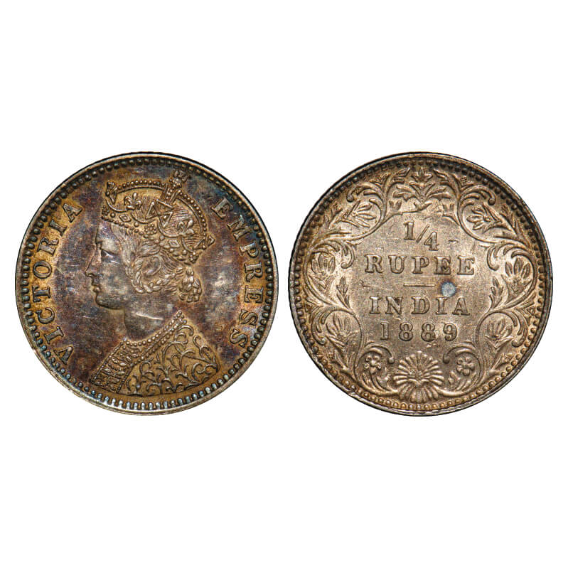 Victoria Empress, Silver, 1/4 Rupee, 1889, Bombay Mint, C(i)/II, 'B' incused. F. Prid 423. GK 715. About Uncirculated. Rare.