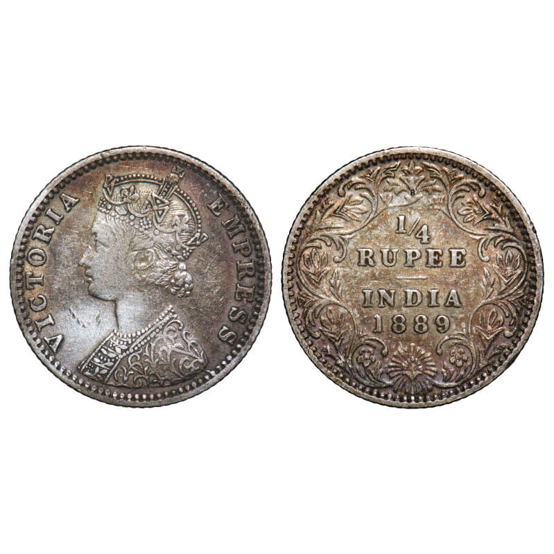 Victoria Empress, Silver, 1/4 Rupee, 1889, Bombay Mint, C(i)/II, 'B' incused. F. Prid 423. GK 715. ...