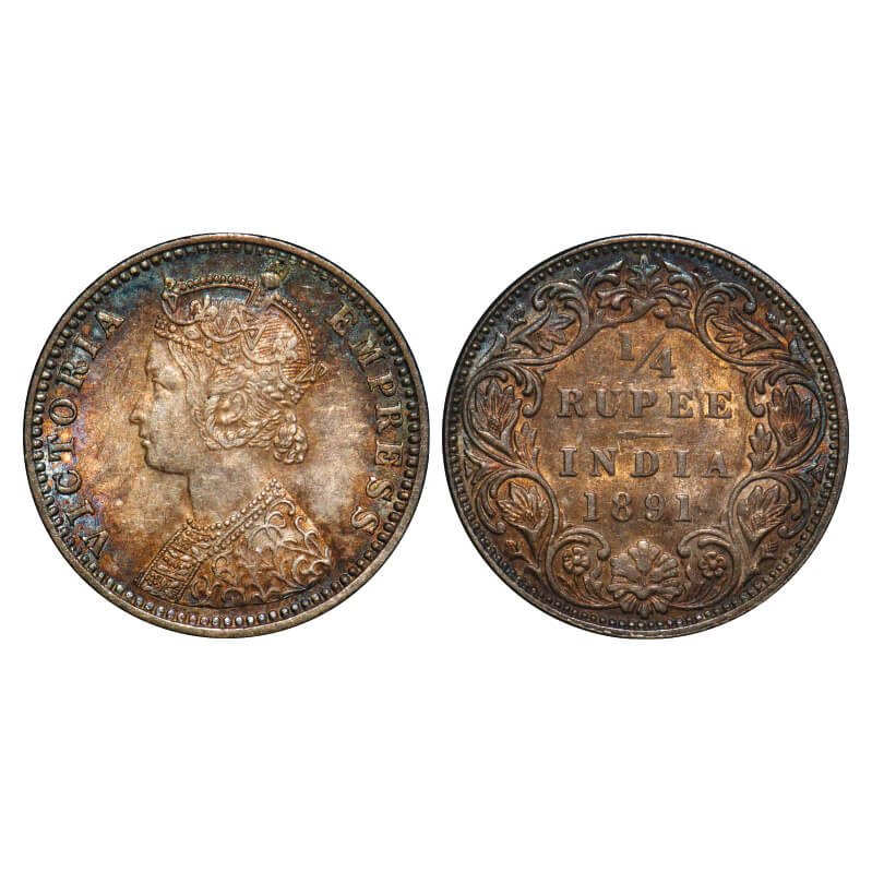 Victoria Empress, Silver, 1/4 Rupee, 1891, Bombay Mint, C(i)/I, 'B' incused. F. Prid 425. GK 720. Extremely Fine+. Very Scarce.