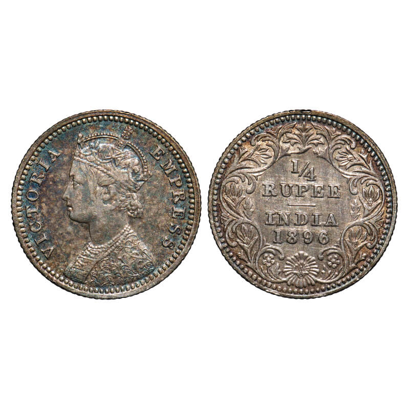 Victoria Empress, Silver, 1/4 Rupee, 1896, Calcutta Mint, C/II, 'C' incused. F. Prid 400. GK 728. About Extremely Fine. Very Scarce.