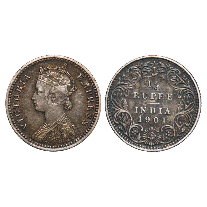 Victoria Empress, Silver, 1/4 Rupee, 1901, Calcutta Mint, C/II, 'C' incused. F. Prid 404. GK 737. Extremely Fine. Very Scarce.