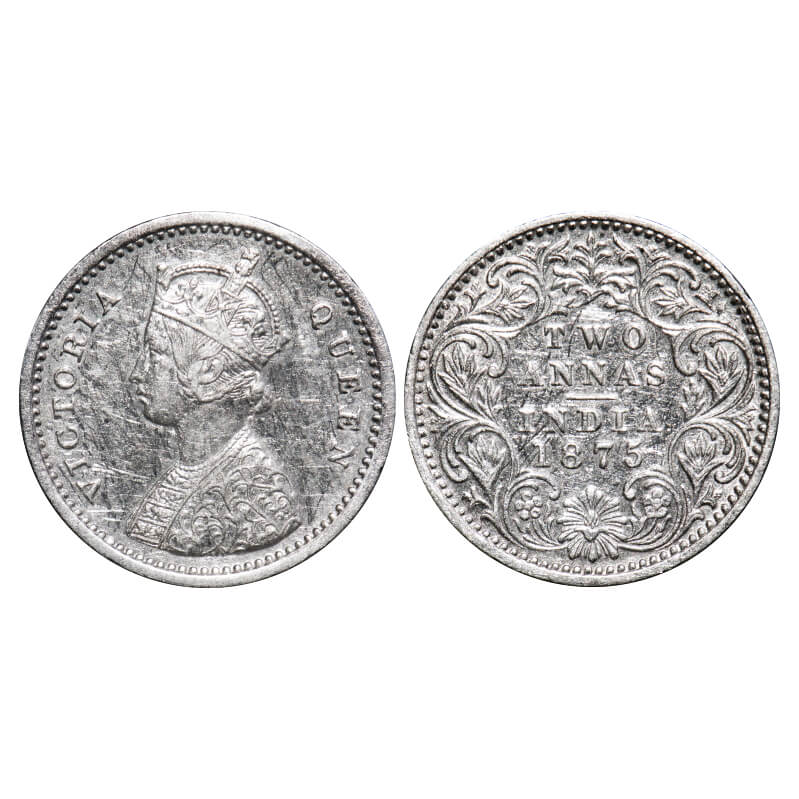Victoria Queen, Silver, 2 annas, 1875, Bombay Mint, A/I, No mint mark, No dot. F. Prid 517. GK 741. Extremely Fine. Very Scarce.
