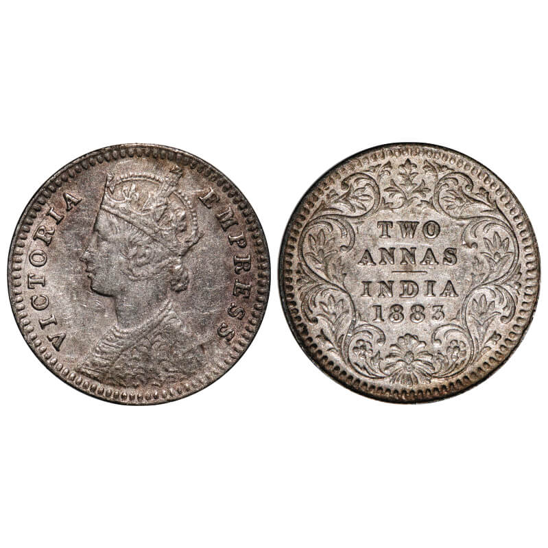 Victoria Empress, Silver, 2 Annas, 1883, Calcutta Mint, B/II, 'C' incused. F. Prid 498. GK 768. Very Fine+. Scarce.
