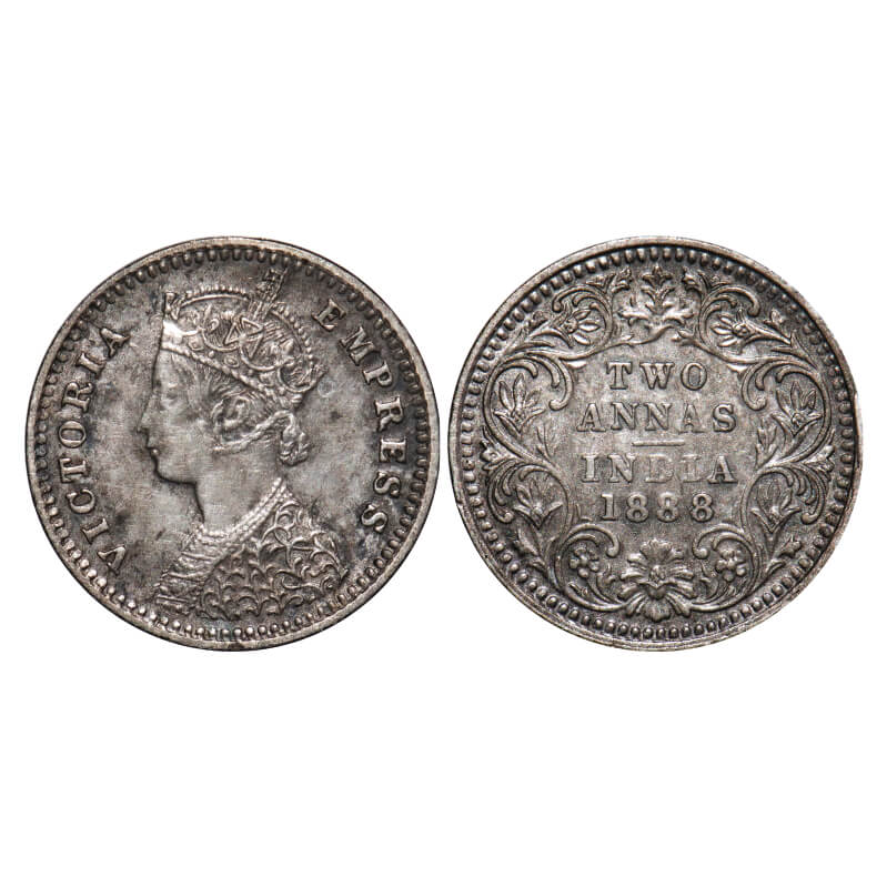 Victoria Empress, Silver, 2 Annas, 1888, Bombay Mint, B/II, 'B' incused. F. Prid 541. GK 785. Very Fine+. Scarce.