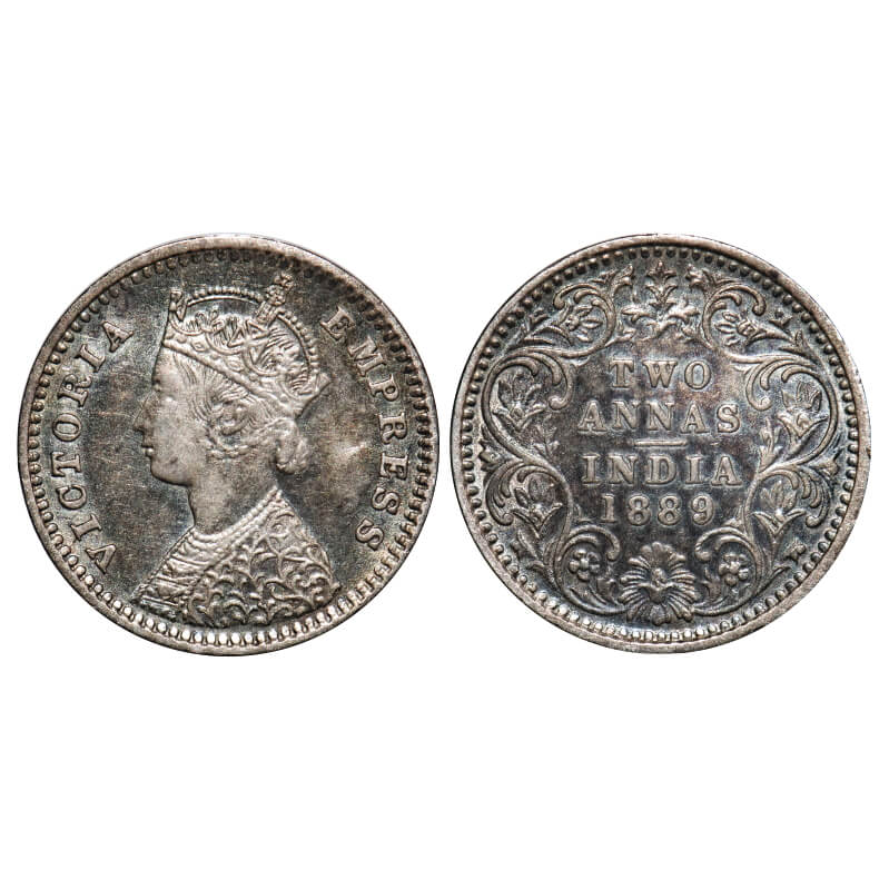 Victoria Empress, Silver, 2 Annas, 1889, Bombay Mint, B/II, 'B' incused. F. Prid 542. GK 787. Extremely Fine+. Scarce.