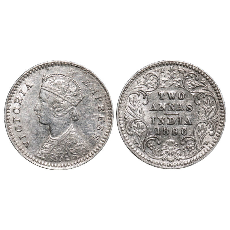 Victoria Empress, Silver, 2 Annas, 1896, Calcutta Mint, B/II, 'C' incused. F. Prid 511. GK 805. Very Fine+. Scarce.