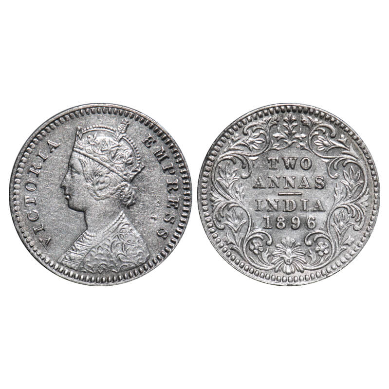 Victoria Empress, Silver, 2 annas, 1896, Calcutta Mint, B/II, 'C' incused. F. Prid 511. GK 805. Extremely Fine. Scarce.