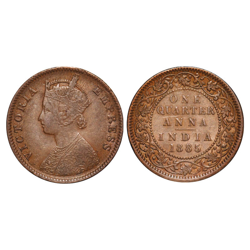 Victoria Empress, Copper, Quarter Anna, 1885, Calcutta Mint, B/II, 'C' incused. F. Prid 618. GK 840. Very Fine+. Very Scarce.