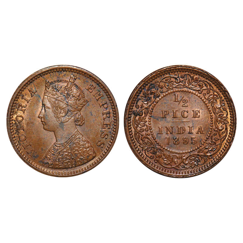 Victoria Empress, Copper, 1/2 Pice, 1895, Calcutta Mint, A/I, No mint mark. F. Prid 728. GK 875. Uncirculated. Very Scarce.