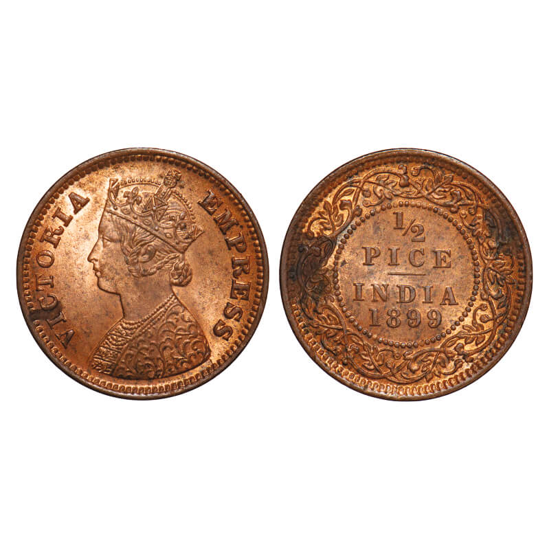 Victoria Empress, Copper, 1/2 Pice, 1899, Calcutta Mint, A/I, No mint mark. F. Prid 732. GK 879. Uncirculated, Details. Rare.